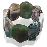 Leloo Jewelries SB0302-200400-GACS, Semi-precious genuine agate receives a sophisticated treatment in this chunky bracelet that's practically made of solid stone, while remaining flexible and feminine. Look closer at the gorgeous polished segments of agate, and you'll see a multitude of details that will work to enhance your own image. Shades of green, soft brown and white; natural striations in the stone, and corrugated facets that will glitter and gleam with your every move. Each piece is unique and individual, variations in the coloring and shading of these agate bracelets are normal and to be expected. Stretched to fit most wrists. Diameter 3 inches Height:1.5 inches Width of each stones: 1.1 inch Weight: 5 oz ...